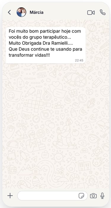Participe de um ambiente seguro, onde pessoas com a mesma busca caminham juntas, compartilham experiências e recebem acolhimento, fortalecendo o processo de cura e transformação!
